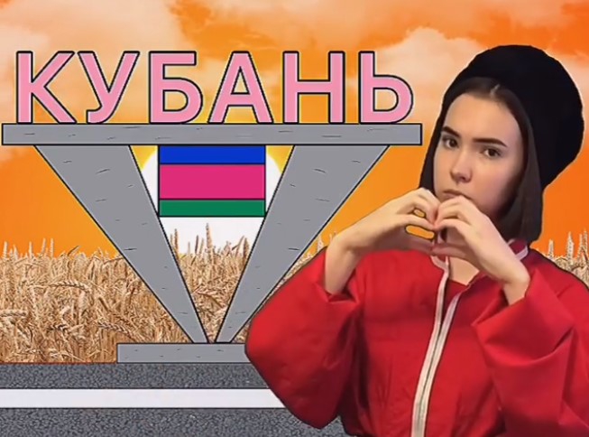 Она читает рэп о достоинствах Кубани — урожайной земле и курортах, упоминая «золотистые поля» и «бескрайние моря». Не обошлось и без культового слогана этих мест: «Если есть на свете рай, то это Краснодарский край».