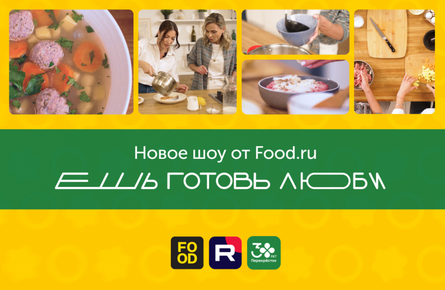 X5 Media ), торговая сеть «Перекрёсток» и видеохостинг Rutube выпустили кулинарное шоу «Ешь. Готовь. Люби». Проект состоит из шести выпусков, в которых ведущие готовят новые блюда и параллельно обсуждают, как процесс приготовления пищи связан с психотерапией. Об этом Sostav рассказала пресс-служба Food.ru.