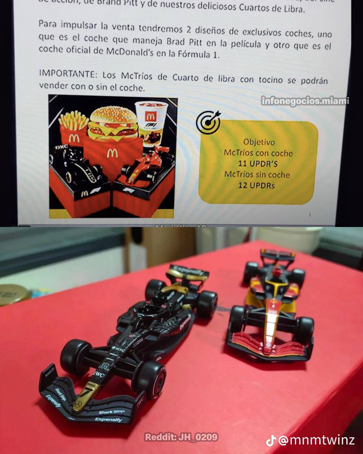 Летом 2025 года McDonald's готовится повторить успех, на этот раз с фильмом о «Формуле-1» с Брэдом Питтом. Пока мир готовится к премьере фильма, эта сеть ресторанов выстраивает свою маркетинговую стратегию, превращая обычный фастфуд в билет в мир больших скоростей и голливудской романтики автоспорта. Такая коллаборация — тонкая игра на ностальгии, амбициях и детских мечтах. Хотя официального подтверждения пока нет, интернет уже взорван утечками о возможных коллекционных наборах.
