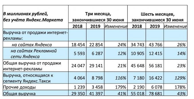 Выручка «Яндекса» во II квартале этого года по сравнению с тем же периодом 2018 года выросла на 41% до 41,4 млрд руб. В эти данные не включены результаты «Яндекс.Маркета», говорится в сообщении компании.