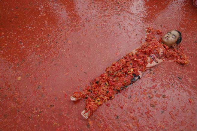 И все это помидорное расточительство проходит в небольшом средиземноморском городке каждый год, в последнюю среду августа уже 72 года подряд. Толпы людей забрасывают друг друга томатами, стены домов покрываются помидорным месивом, все это стекает и превращается в кетчуп, в котором некоторые с удовольствием купаются. Количество желающих попасть в томатную гущу событий растет с каждым сезоном.