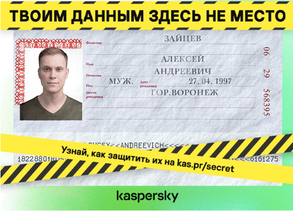 Идея на самом деле очень простая: а что, если мы гиперболизируем эту ситуацию и разместим паспорт для всеобщего обозрения? Даже там, где ему точно не место. Ведь по сути, так оно и есть, узнать твои ФИО, дату рождения, где ты живешь и когда твоя квартира пустует (потому что все видели, что ты в отпуске) — очень просто! Всем доступны твои данные. Поэтому для рекламной кампании мы разработали концепцию «Твоим данным здесь не место», создали макеты, максимально близкие и понятны каждому из нас. Нужно понимать, что говорить с более молодой аудиторией языком запугивания уже не получится. Поэтому было важно сохранить некую грань между обозначением проблемы и «кошмарами».