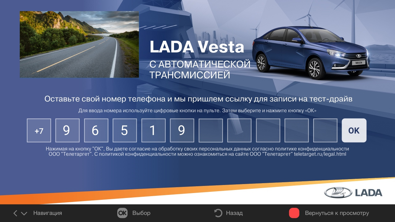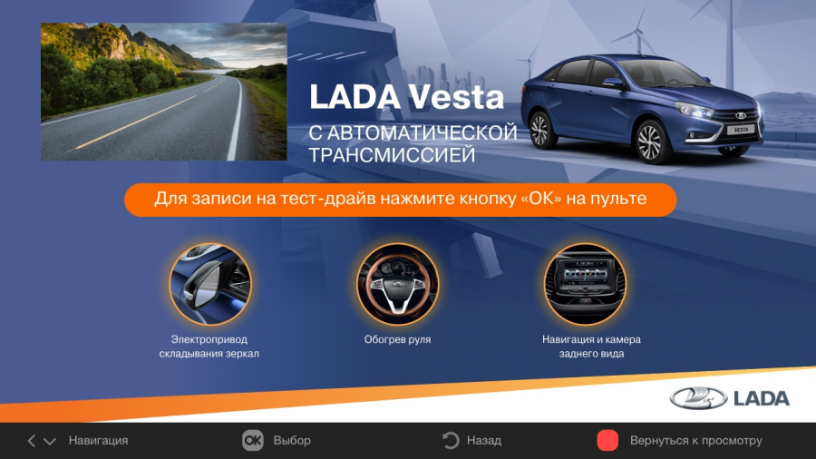 С помощью пульта зрители могли активировать информер и перейти на микросайт, содержащий дополнительную информацию о новой модели LADA Vesta. Зрители, желающие записаться на тест-драйв, оставляли свой номер телефона в специальной форме.