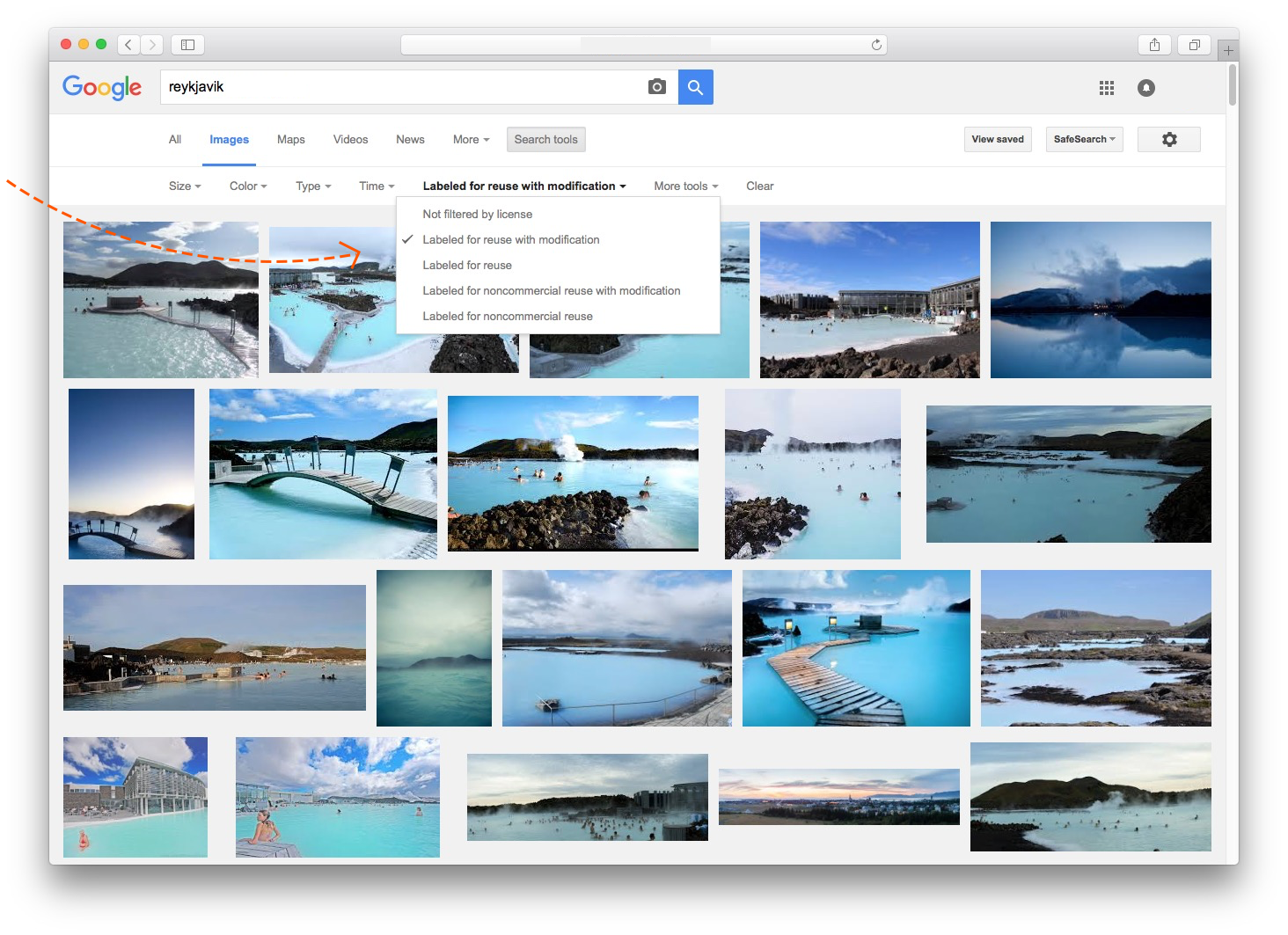 Самый простой способ найти такие изображения — воспользоваться в Google вкладкой «Картинки» и уточнить поиск в меню «Инструменты поиска». Во вкладке «Права на использование» можно выбрать лицензию, разрешающую бесплатное использование изображения. Кстати, здесь же можно уточнить и размер искомой картинки.