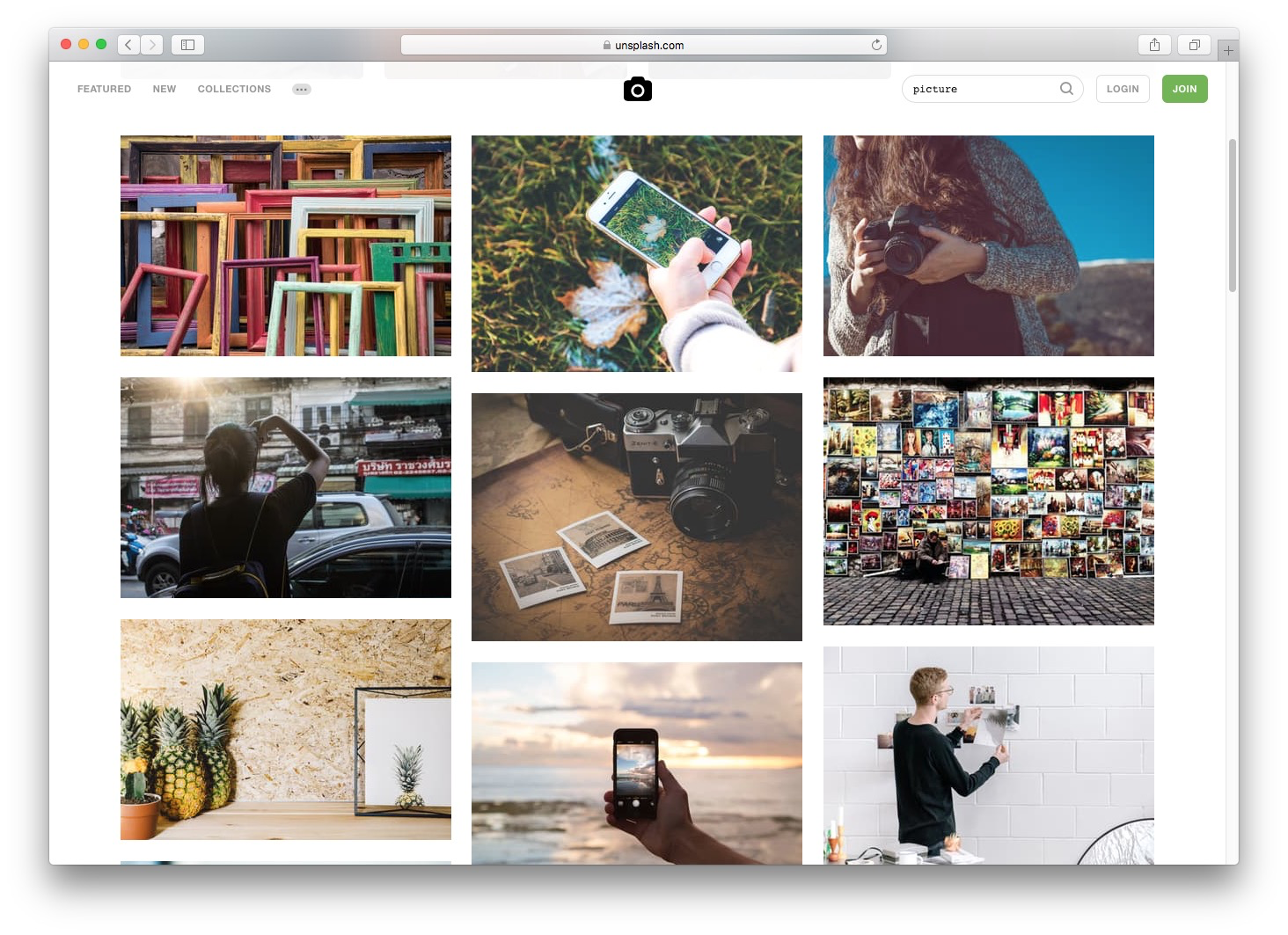 Позволяет найти хорошие снимки в наиболее популярных категориях: животные, архитектура, мода, еда, природа, технологии.
