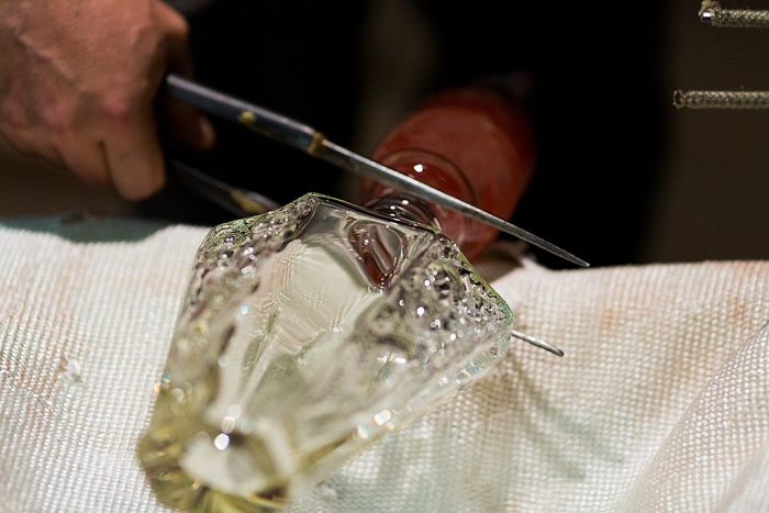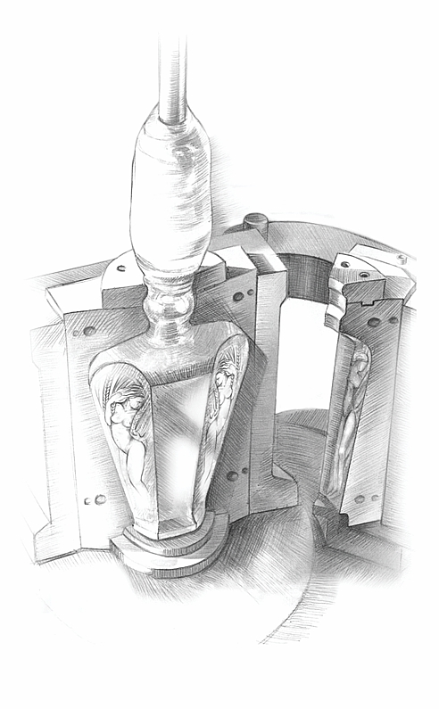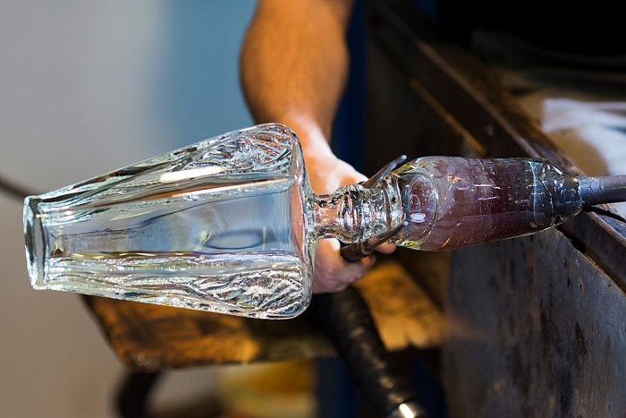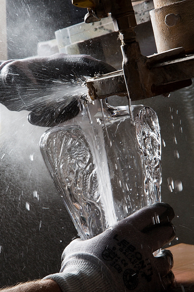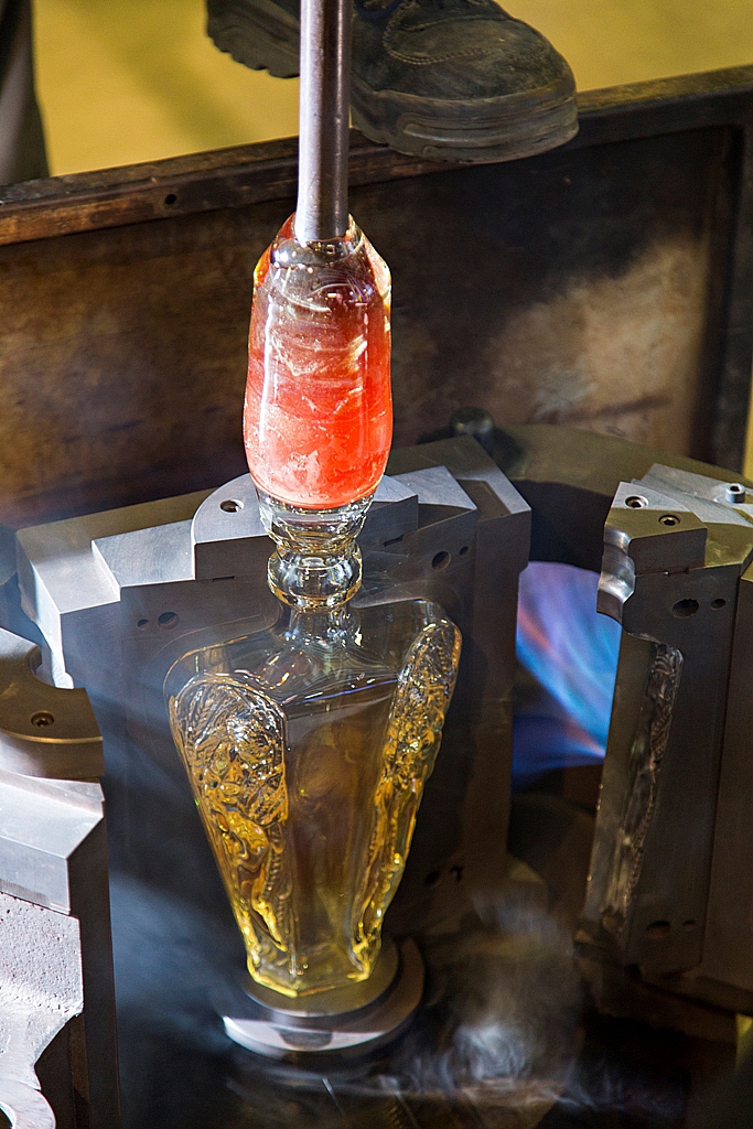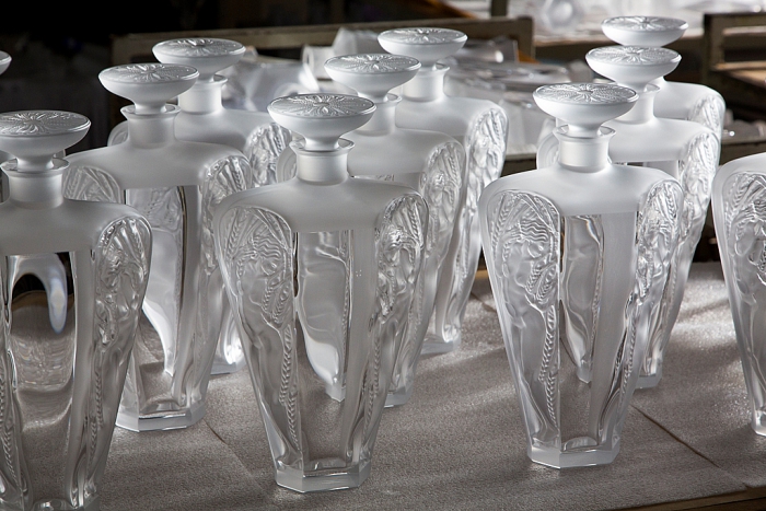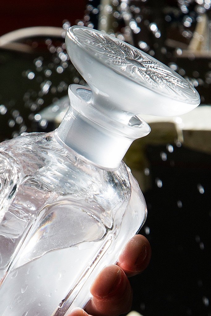 Декантеры производятся вручную в мастерских Lalique в Эльзасе, Франция. Раскаленный хрусталь заливается в металлическую форму для отлива, затем мастера-полировщики создают контраст между сатинированным и прозрачным стеклом, чтобы подчеркнуть хрупкость и монументальность сосудов. Финальный этап – гравировка индивидуального порядкового номера на дне декантера. Готовые сосуды пересылаются на Мариинский ликеро-водочный завод в Сибири.