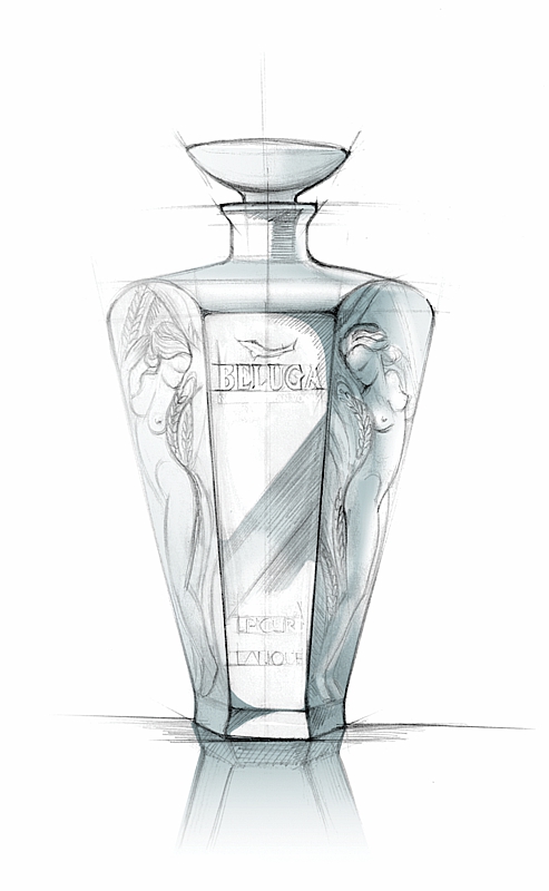 На первом этапе работы бренд-команды Beluga и Lalique встретились в штаб-квартире французского дома в Париже. Там появилась концепция Beluga Epicure by Lalique – «особая форма для исключительного содержимого», и креативный директор Lalique Марк Лармино сделал первые наброски будущего декантера: