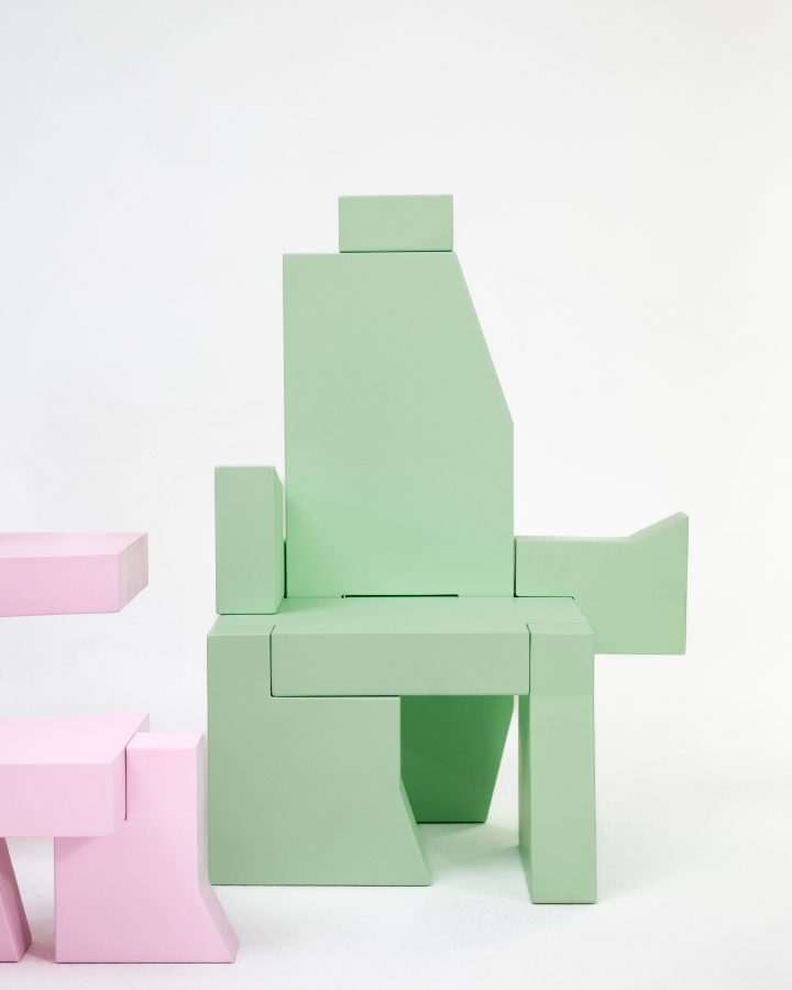 Каждая комната наполнена предметами интерьера в необычной форме и интерпретации, созданными специально для ярмарки Blazar. Например, можно увидеть Shippazl от Марины Прохоровой. Это конструктор, одновременно выполняющий функции кресла, стола и табурета.