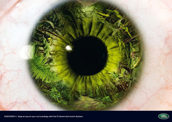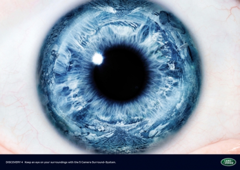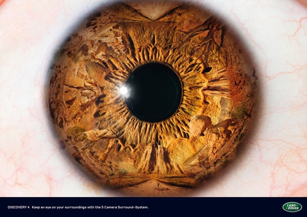 В рамках рекламной кампании Land Rover Discovery 4, подготовленной агентством Y&R Berlin, вышли три принта с изображением зрачков, внутри которых показаны футуристические ландшафты.