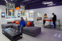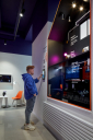 В салоне можно познакомиться с технологиями компании и протестировать их. Во входной зоне расположен экран, который реагирует на движение, «считывает» лицо, определяет пол, возраст и выдает таргетированное предложение клиенту.