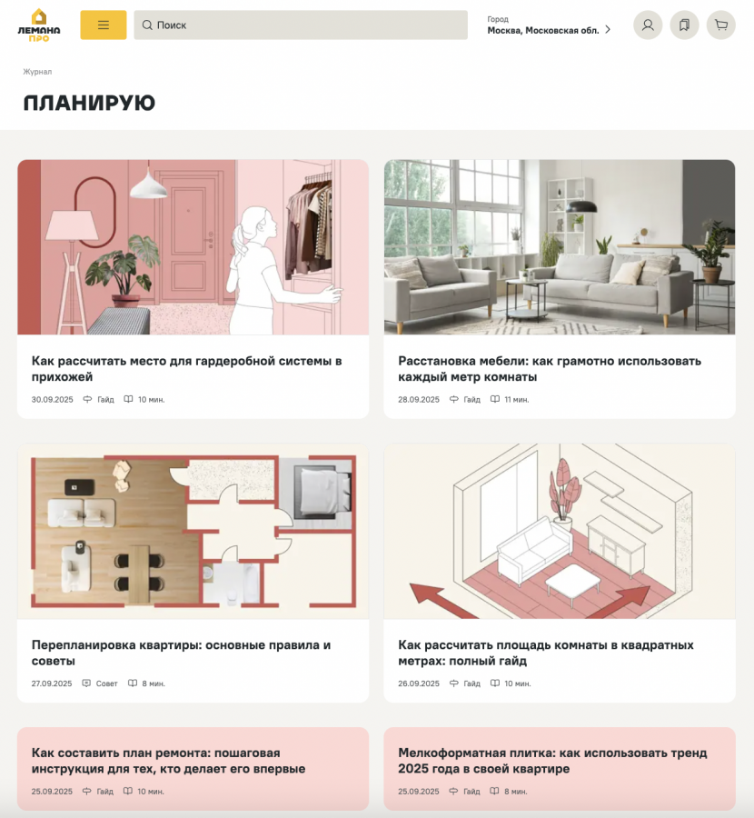 Контент журнала разделен на семь рубрик — от планирования ремонта и выбора строительных решений до идей для самостоятельного творчества. В первых публикациях уже представлено более 60 материалов, а в течение месяца планируется добавить еще столько же. Далее обновления будут выходить регулярно — от 25 до 40 статей ежемесячно.