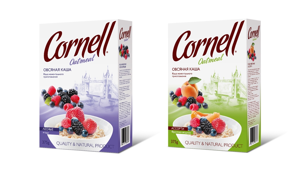 Агентство Lena McCoder разработало торговую марку готовых завтраков Cornell для известного на российском рынке произодителя - «Фруктовница». В рамках проекта креаторы создали название и дизайн упаковки для линейки овсянных каш, сделав их более современными и желанными для потребителя.