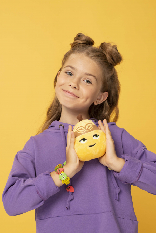 Мы разработали новый уникальный для рынка ритейла носитель — яркие шармы для детей и взрослых. Их можно носить на браслетах, шнурках, зарядном проводе и придумывать еще множество вариантов. В коллекции 16 персонажей, с которыми дети уже успели познакомиться в рамках первого запуска: Клубнетта, Арбузина, Чико Банана и другие.
