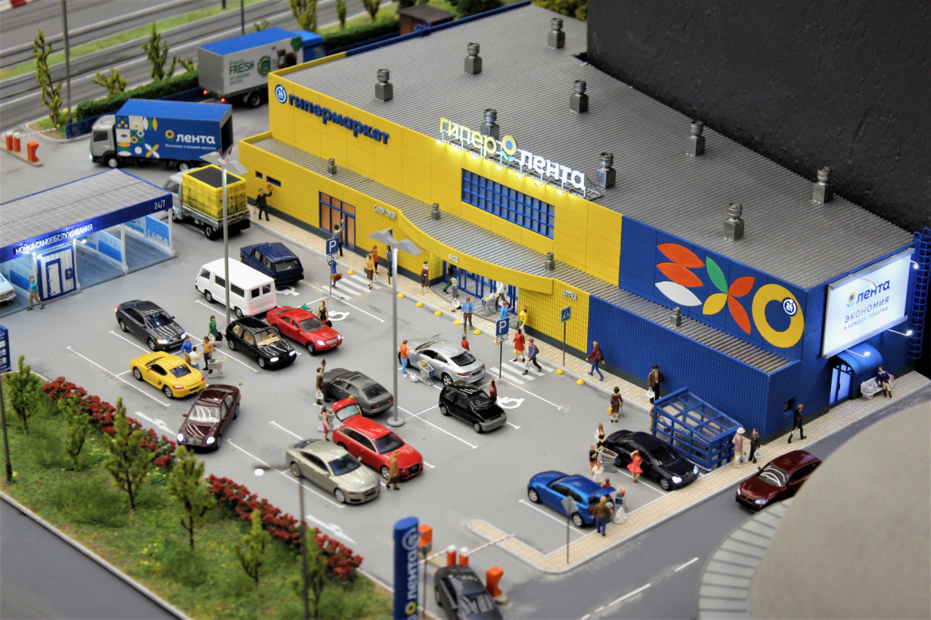 - Сервис доставки «Лента Онлайн» на макете представляют спешащие к покупателям курьеры. Теперь жители самого большого макета России тоже могут совершать покупки всего в один клик, рассказывает «Лента».