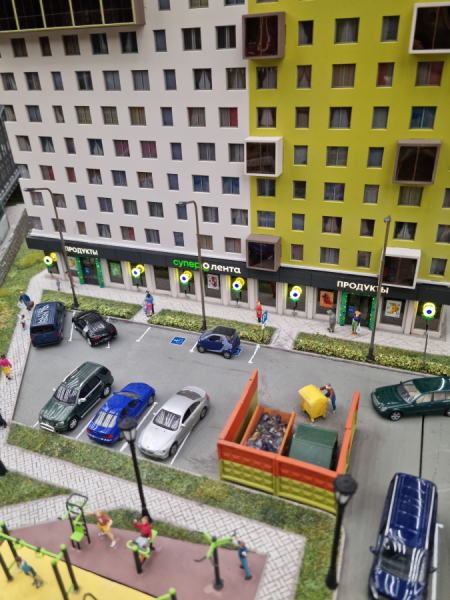 Ответственной задачей для команды было воссоздать подсолнух — узнаваемый и яркий бренд-символ «Ленты». Моделисты-проектировщики использовали технологии 3D-печати, а затем подсветили прозрачные лепестки светодиодами. Объёмные и знакомые посетителям подсолнухи украсили фасады магазинов на макете.