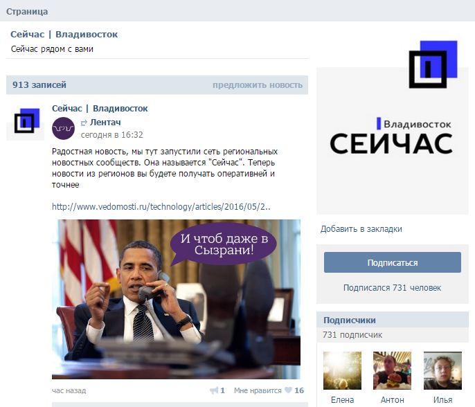 В социальной сети «ВКонтакте» запущена сеть региональных новостных сообществ. Проект «Сейчас» принадлежит руководителю «Лентача» Марку Шейну (Валерию Маркову) и директору Urban Rooms Антону Гангнусу. Создатели планируют инвестировать в новое медиа около миллиона долларов, пишут «Ведомости».