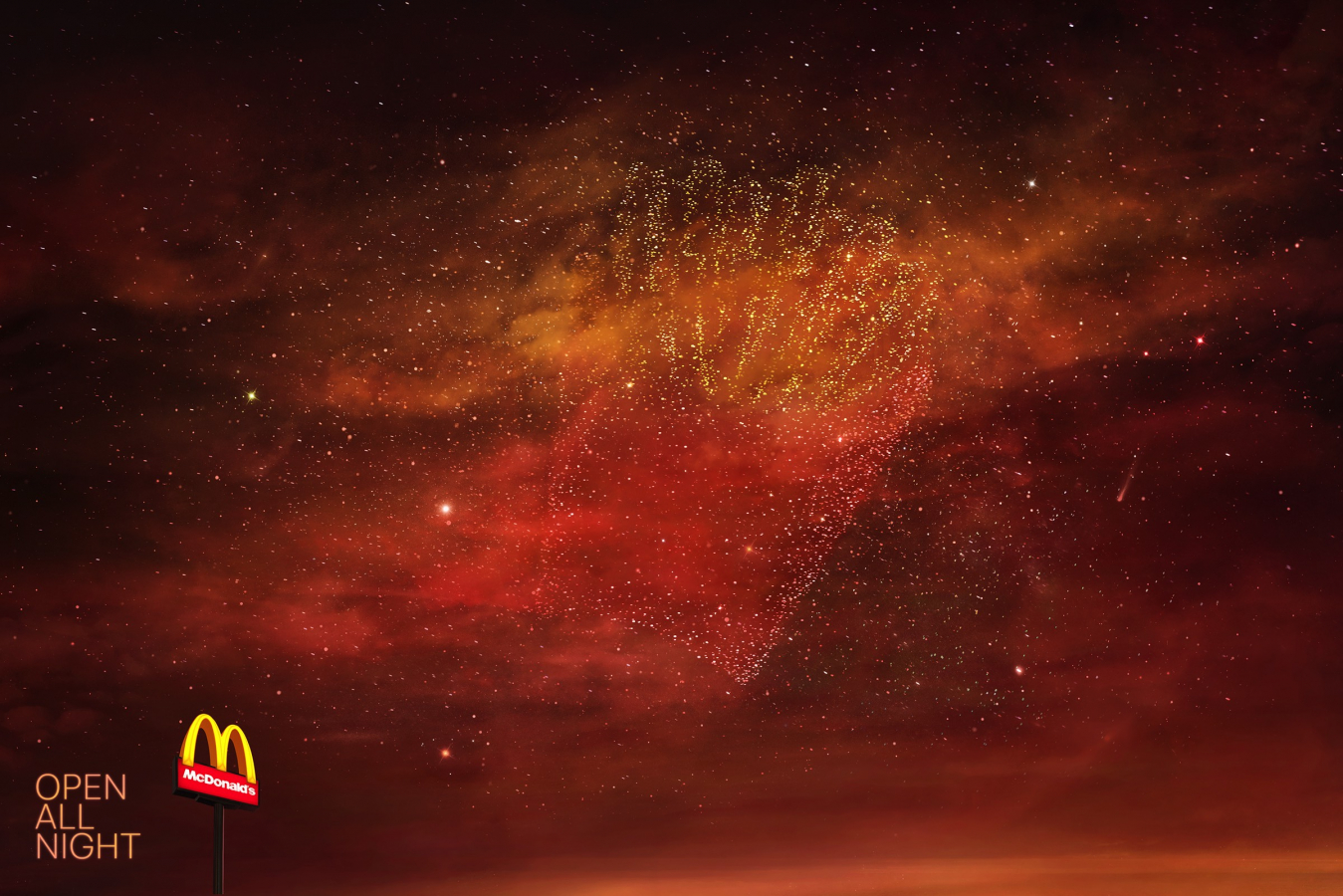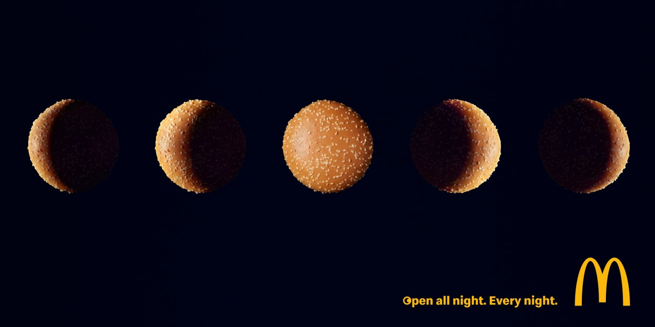 Агентство Leo Burnett в Саудовской Аравии выпустило баннеры, на которых ночное небо напоминает еду из McDonald's. Реклама призвана привлекать клиентов в заведение круглосуточно.
