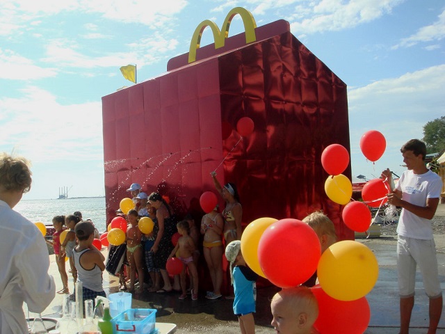Выглядели они тоже необычно. В зависимости от темы коробка превращалась в аттракцион в виде мохнатого животного или лабиринта, в зеркальный, брызгающийся водой куб или просто место для рисования. Под каждую тему была разработана специальная спортивно-образовательная программа для детей.