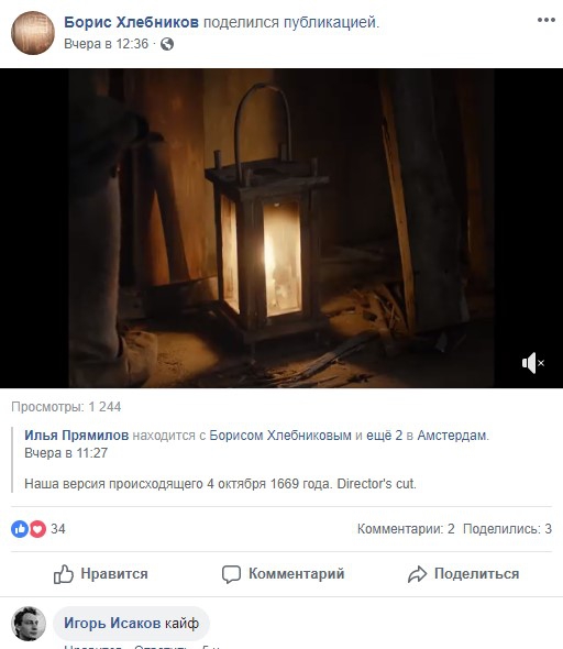 Более кинематографичная — режиссерская версия ролика — размещена на странице режиссера Бориса Хлебникова в Facebook.