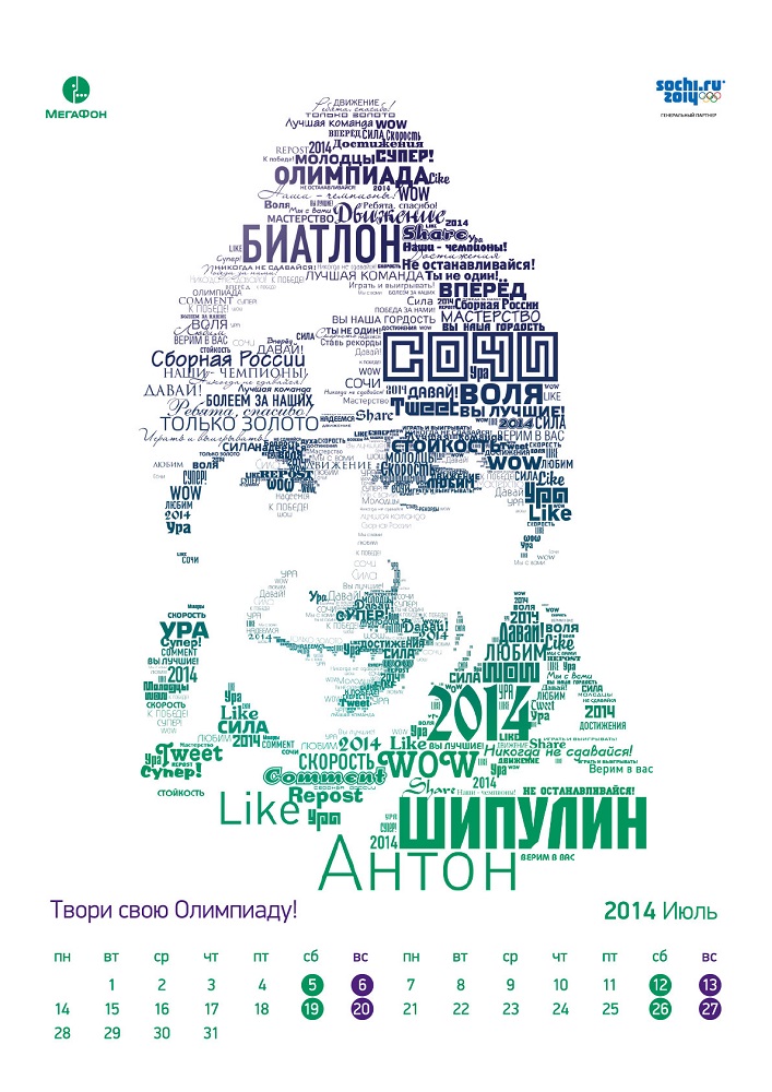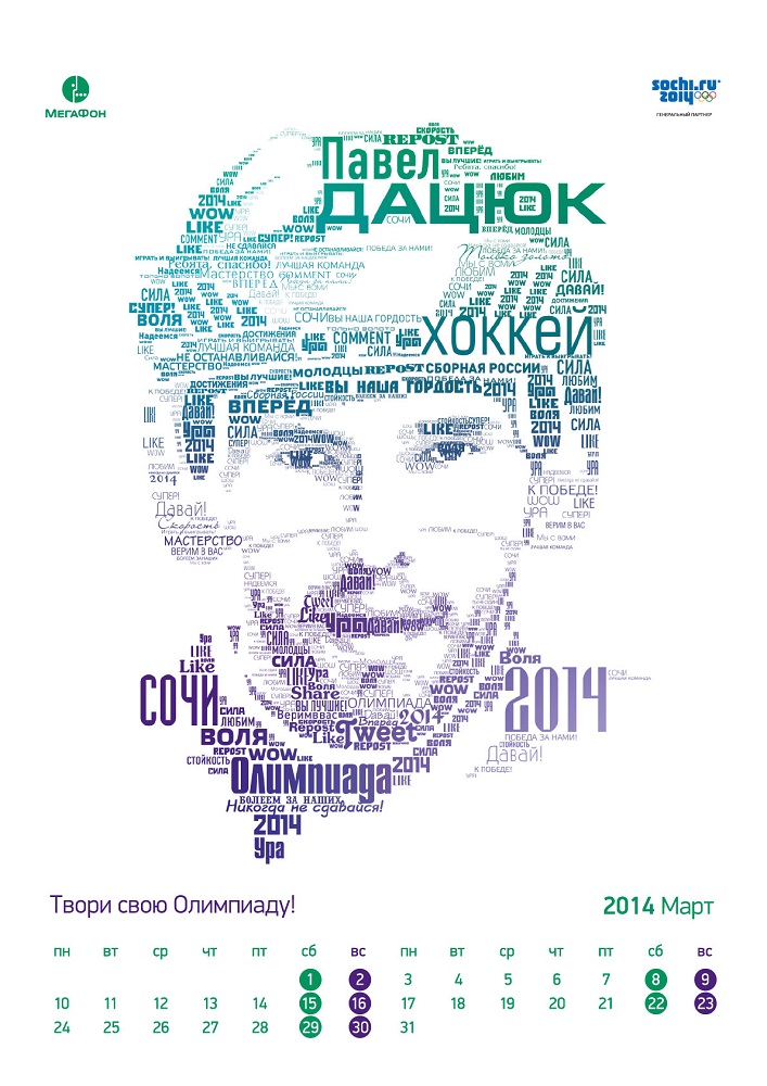Агентство Leo Burnett Moscow разработало имиджевую кампанию для мобильного оператора «МегаФон» на Олимпийских играх в Сочи. В рамках сотрудничества агентство придумало концепцию внутреннего оформления павильона «МегаФон» - MegaFaces, макеты для ООН, материалы для ритейла и оригинальный подарочный календарь.