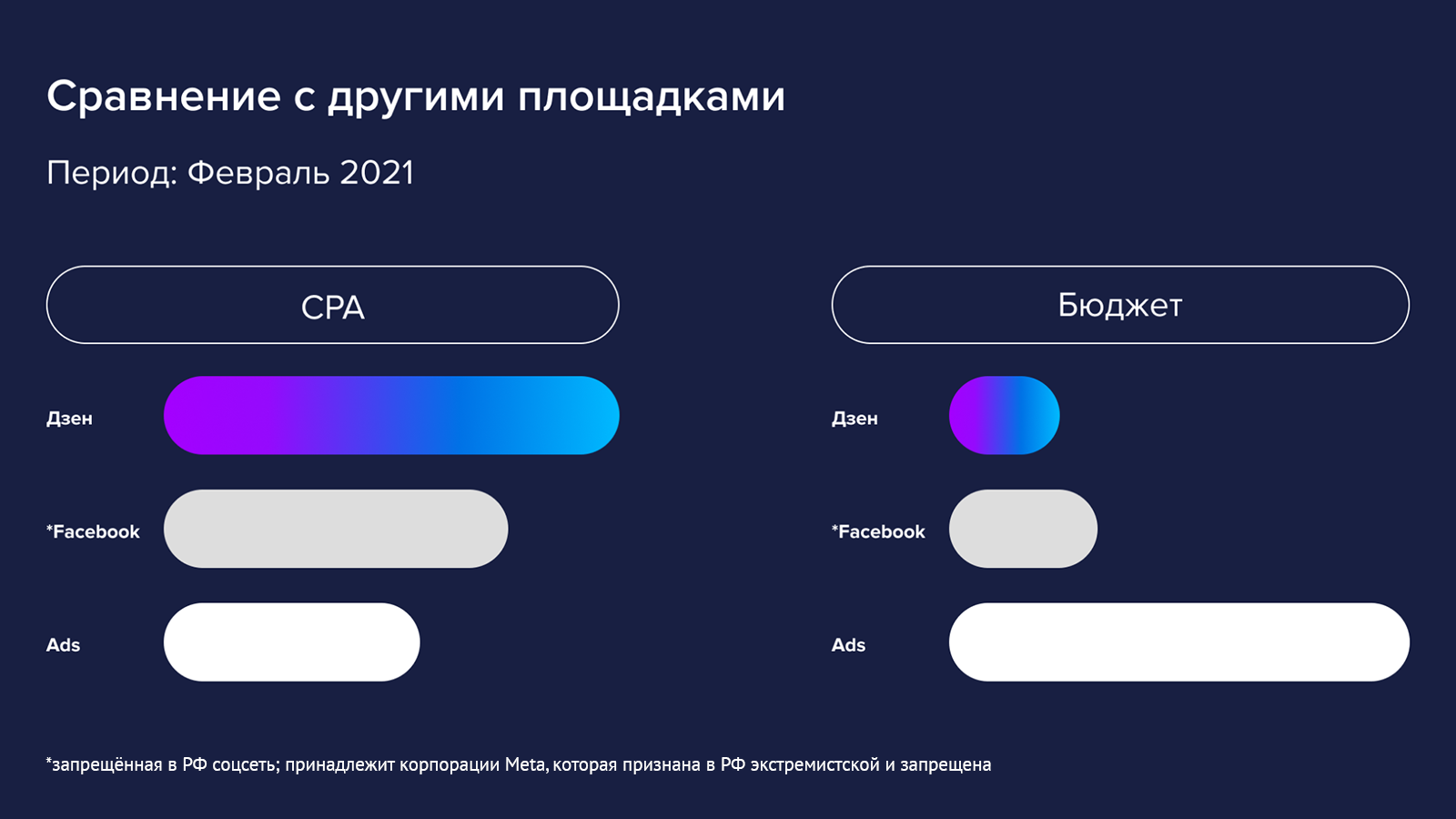 Кампания проходила в период с февраля по март 2021 года. Ранее мы не запускали рекламу в «Дзене» с подобной целью и тематикой, поэтому при прогнозировании ориентировались на бенчмарк от площадки по дочитываниями в образовательной тематике и намеренно завышенному CPA. Наша цель была получить 33 333 дочитываний и 63 регистрации.