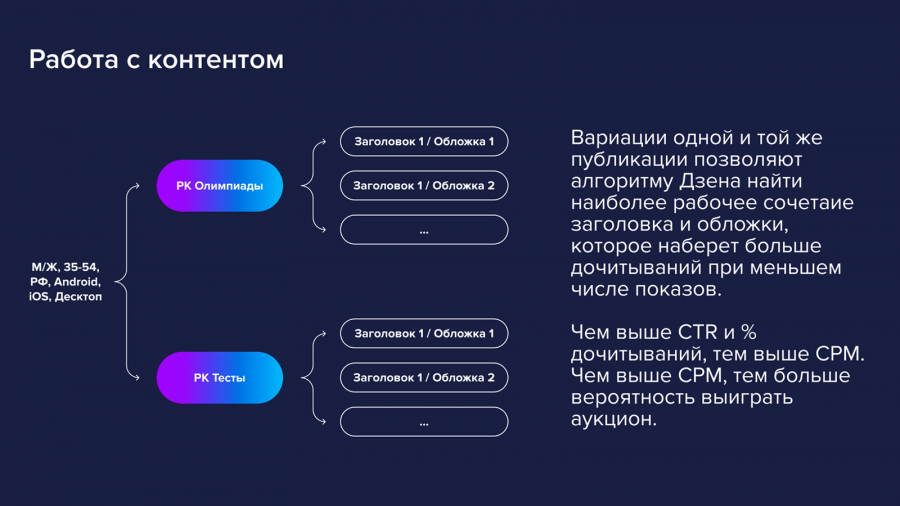 Для каждой статьи мы прописали по три-пять заголовков и использовали четыре-пять обложек, как рекомендует «Дзен».