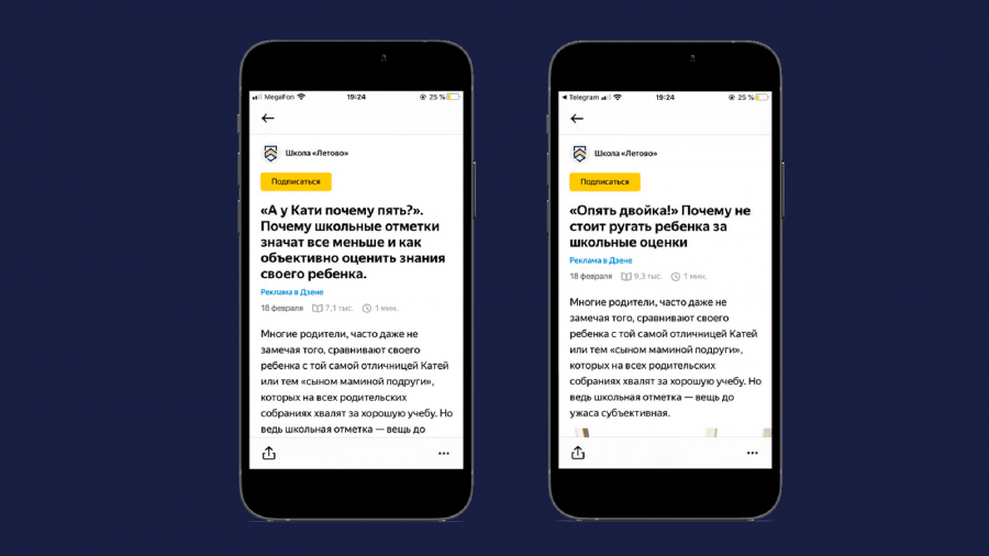Целевой аудиторией стали родители, чьи дети обучаются в 5−11 классах. В качестве площадки мы выбрали «Яндекс Дзен» по нескольким причинам: