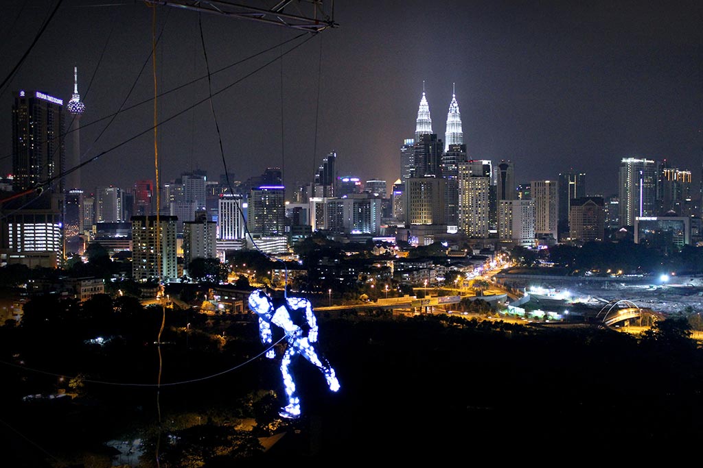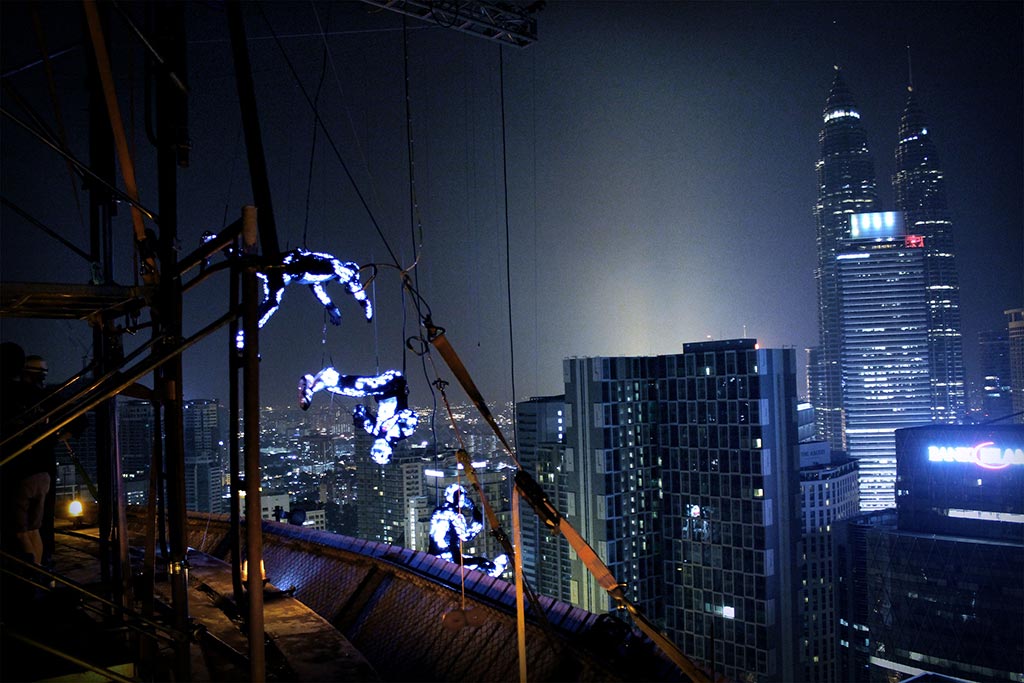 Результатом эксперимента стало настоящее светопреставление. Каскадеры проделывают невероятный путь по ночному Куала-Лумпуру — словно независимо от гравитации. Они проносятся по крышам, совершают удивительные прыжки и приземляются на Lexus. Съемками ролика занимался режиссер Адам Берг.