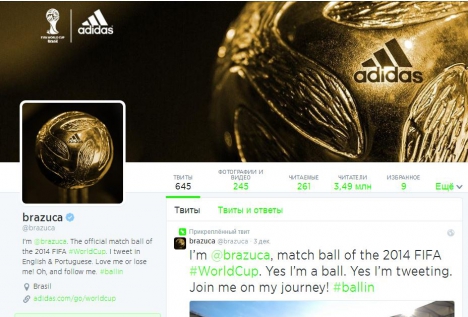 Безусловным лидером стал бренд Adidas и его аккаунт @brazuca, который вели от лица официального мяча ЧМ. Adidas набрал 90,4 баллов по оценке Ad Age и ListenFirst. Для половины спонсоров самым успешным стал первый день мундиаля – 12 июня.