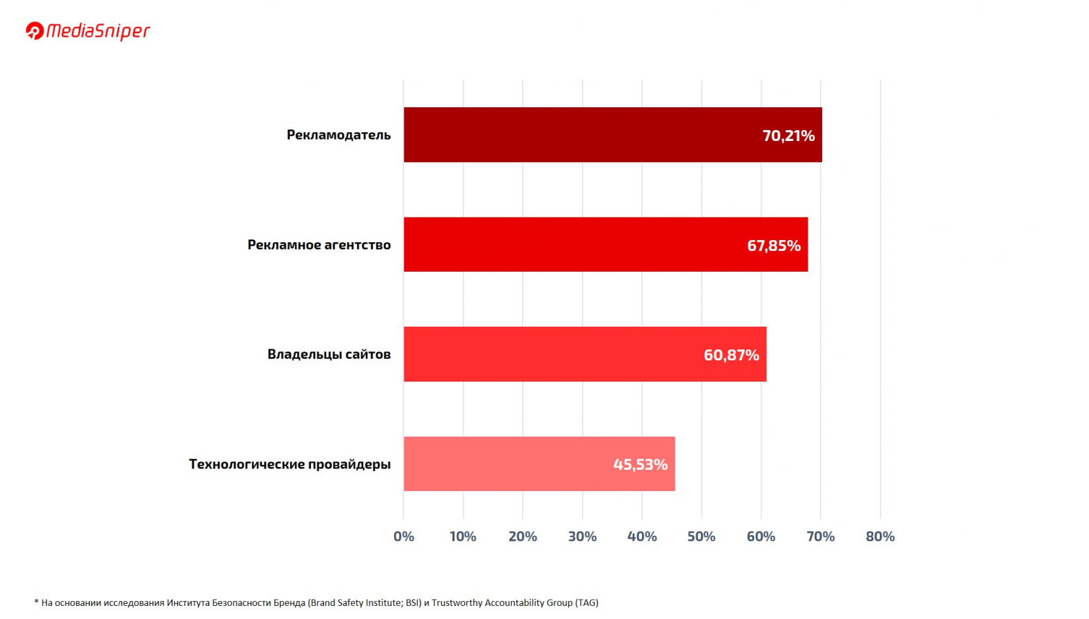 Причем большая часть потребителей уверена в том, что ответственность за создание вокруг себя благоприятной рекламной экосистемы лежит на (сюрприз) рекламодателе и рекламном агентстве. Удивительно при этом, что технологических провайдеров, которые зачастую и могут обеспечить эту безопасность, считают ответственными только 46% респондентов.