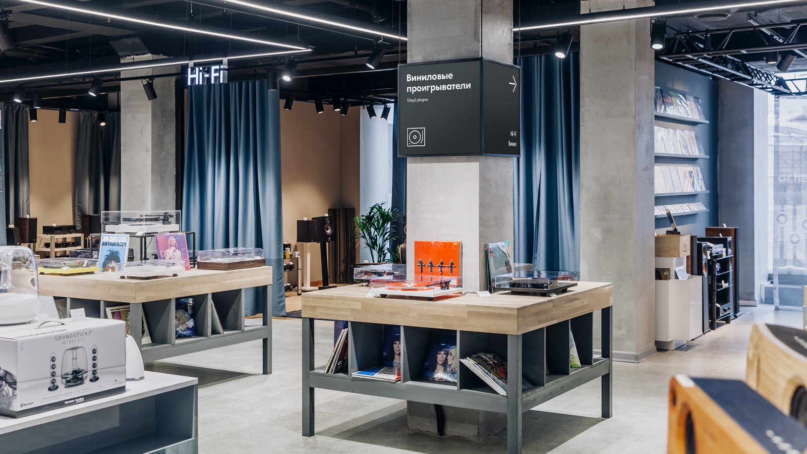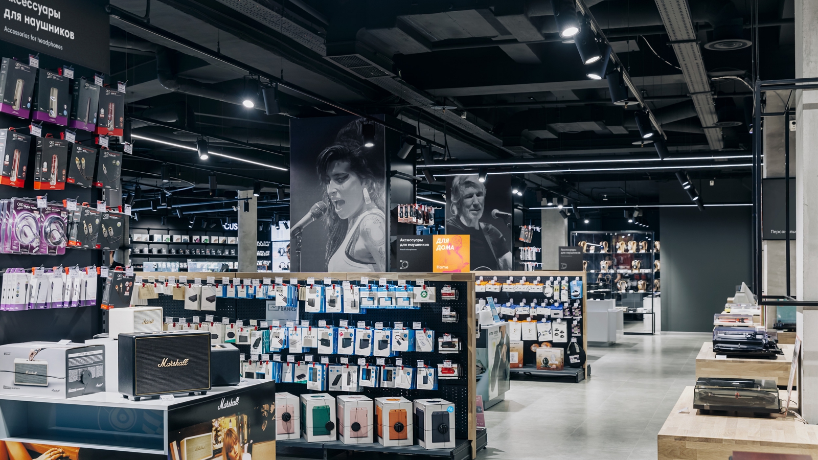 В новом пространстве появились категории профессионального аудио, вокальных микрофонов и микрофонов для записи видео, расширилась зона винила и оборудования High End, портативной и полноразмерной акустики.