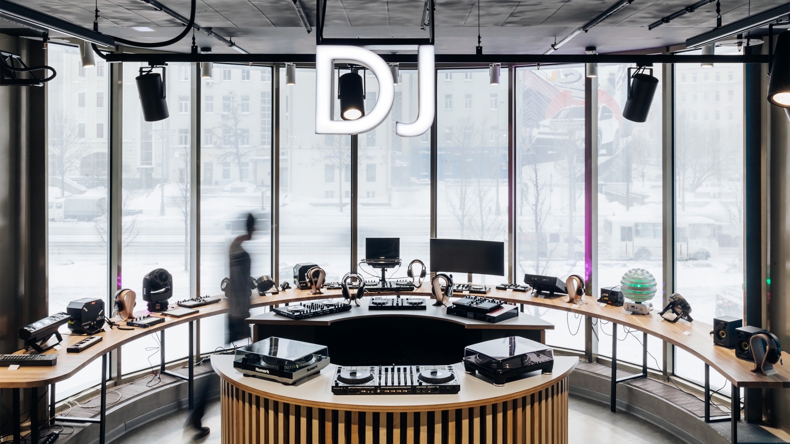 Аналога такого магазина просто не существует. Это самый большой магазин аудио в Европе! Мы создавали ритейл-пространство, анализируя каждый шаг покупателя, консультантов и их взаимодействие. Замкнув в круг стойку с выкладкой якорной категории (наушники) мы выделили её и сделали центром всего пространства. Данное решение помогает покупателю ознакомиться со всеми категориями, представленных в торговом зале. Такой приём также помог уменьшить количество шагов консультанта во время общения с покупателями.