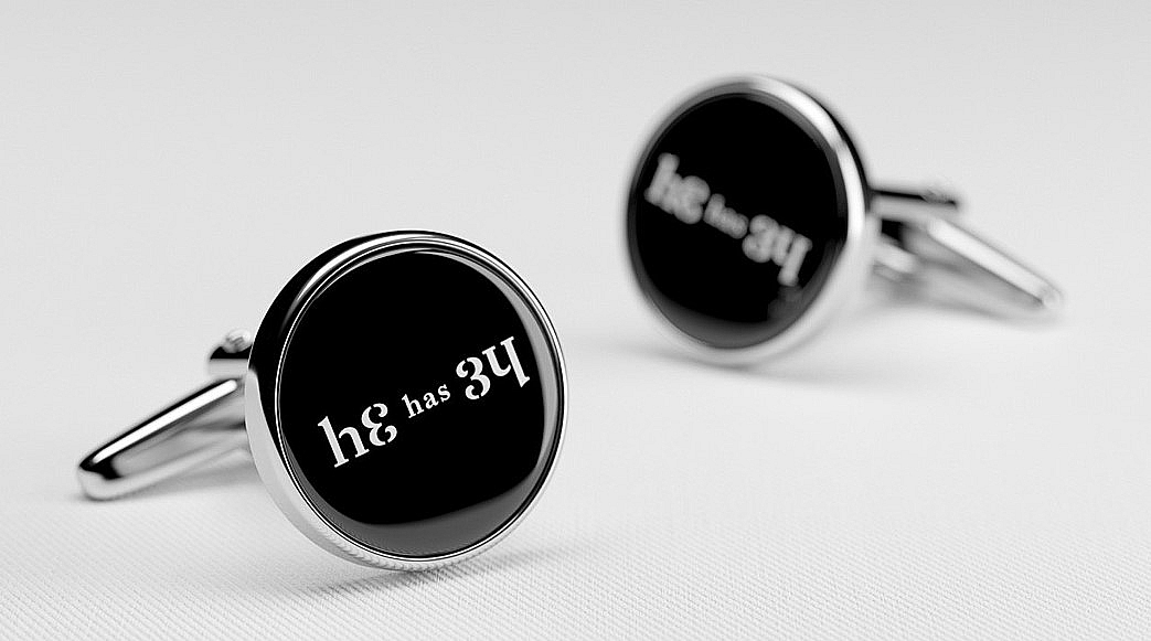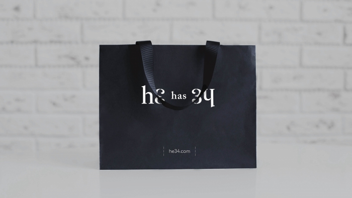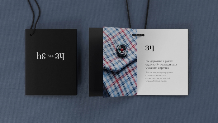 Михаил Губергриц вспоминает: «Я заметил, что если число 34 перевернуть на 180 градусов, получается английское местоимение «he» – он… мужчина и его идеальная, совершенная сорочка. Дальше уже было делом техники сделать из этой идеи красивый логотип-перевертыш».