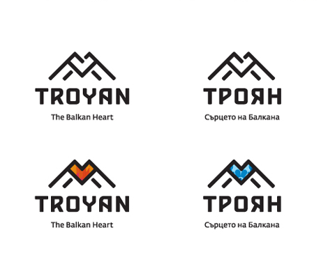 Поскольку город Троян расположен в самом центре Болгарии и жители города считают, что именно их город является сердцем Балканского региона. Логотип, визуально объединивший горы и сердце, поддерживается слоганом «Сърцето на Балкана» («Сердце Балкан»).