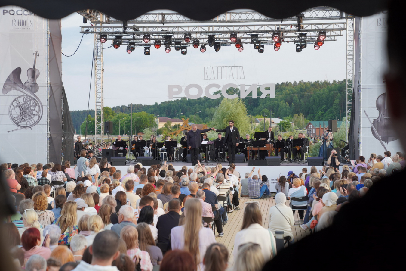 Одна из фишек, которую предложила команда агентства «Лира», — оформление сцены. Она была без задника, и через нее, как в рамке, были видны потрясающие пейзажи нашей страны. В реализации концертов регионы могли интегрировать это решение на свое усмотрение.