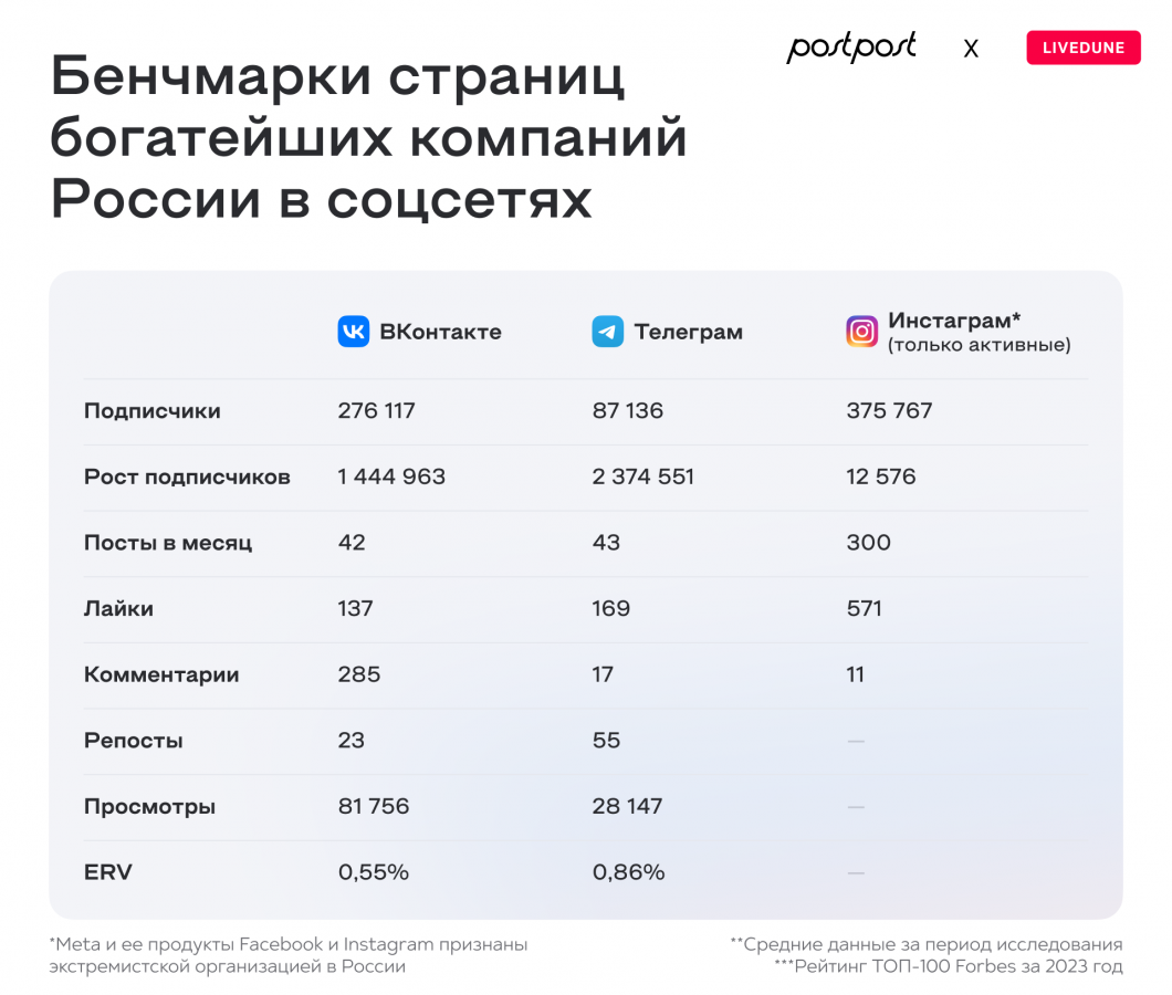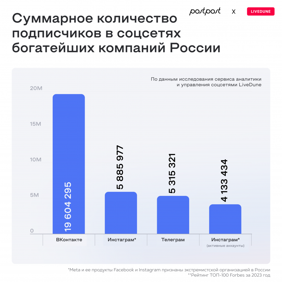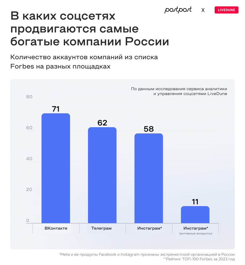 «Контент агентство PostPost» проанализированы аккаунты крупнейших компаний России из списка Forbes. Эксперты исследовали, какие социальные сети выбирают самые богатые компании страны, какие стратегии работают эффективнее и как они удерживают свою аудиторию в условиях блокировок и изменения медиапространства. Итогами с Sostav поделилась Мария Чашникова, руководитель группы внешних коммуникаций LiveDune.