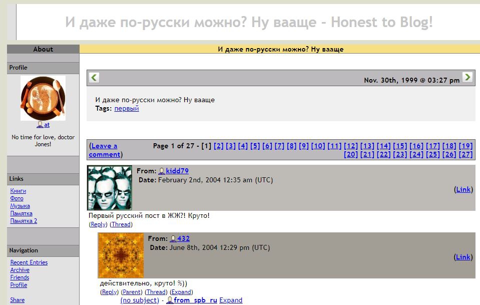 Сколько инфоповодов, мемов и культурных/общественных явлений зародилось в «Живом журнале», сейчас не сосчитать. Старожилы вспомнят «лытдыбр», «албанский язык», «ТП» (женщина с низким IQ), «рукопожатный человек», движение «Синие ведерки», фразу «Верните рынду». Рейтинги пользователей, социальный капитал, полноценное медиа «Журнал ЖЖ», регулярные перезапуски и обновления — сервис пережил многое на своем веку.