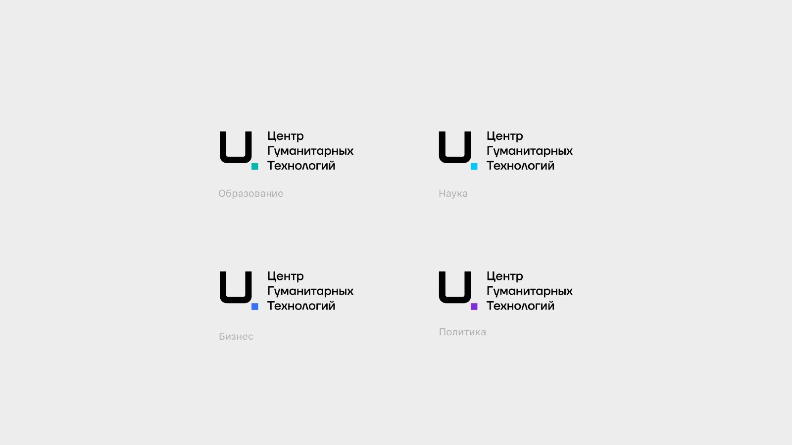 В агентстве подобрали фирменные цвета, которые символизируют направления работы ЦГТ: бирюзовый — образование, фиолетовый — политика, синий — бизнес, голубой — наука. Холодная палитра ассоциируется со строгостью и профессионализмом, а также работой с технологиями, считают в «Логомашине».