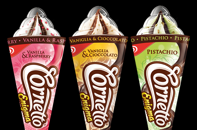 Дизайн-студия Carter Wong провела редизайн известной марки мороженого Cornetto, которая принадлежит компании Unilever. Смена дизайна стала частью общей стратегии бренда по репозиционированию: теперь марка ориентирована на аудиторию от 15 до 25 лет. Отметим, что марка переживает такие изменения в дизайне впервые за свою полувековую историю.
