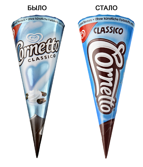 «В результате, появилось больше динамики, логотип стал крупнее и чище, - говорит Константин Коберник. - Шоколад красиво растекается по упаковке и, как в настоящем рожке, собирается в кончике. Отличный ход с дополнительной графикой - она игривая, легко сделана и близка молодежной аудитории. В отличие от графики на специальных вкусах: лоза и ягоды смотрятся пестро. В целом, могу сказать, что агентство Carter Wong прекрасно справилось: это то, что нужно Cornetto, ведь бренд провел первый редизайн за 50 лет. Упаковка удачно синхронизирована со временем, продажи у них точно не упадут. Думаю, после грамотного рестайлинга даже вырастут!».