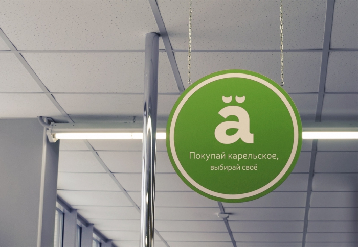 Одно из назначений логотипа — способствовать продвижению карельских товаров на внутреннем рынке. Брендирование торговых точек в комплексе с рекламной кампанией поможет привлечь внимание жителей республики и гостей к продукции местных производителей. Дополнением к логотипу стал жест победы - он наглядно поддерживает надстрочный акцент знака и приобретает новый смысл.