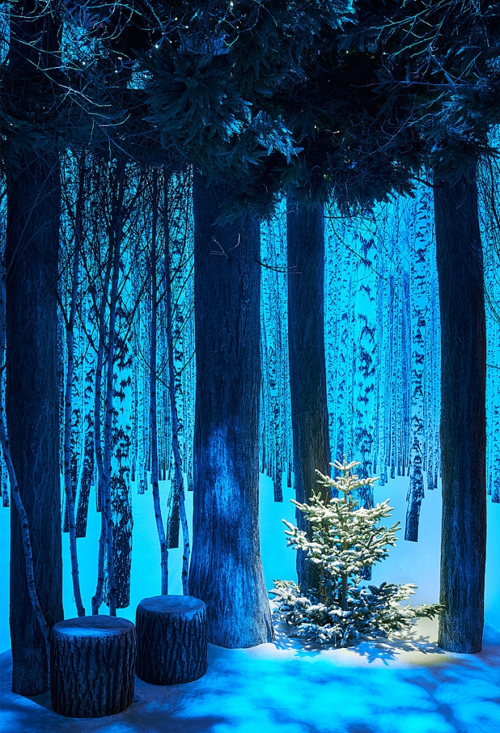 Айв и Ньюсон придумали необычный дизайн лобби отеля. Оно украшено маленькими елками, ветками сосны и светящимися стенами с изображением березовой рощи. Освежение в лобби подражает световому дню: утром там ярко, а вечером – темно.