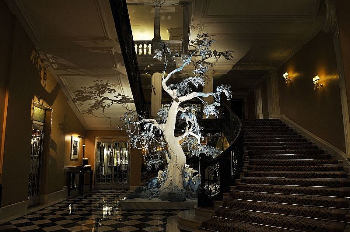 Ведущие дизайнеры Apple, Джони Айв и Марк Ньюсон, оформили новогоднюю елку для лондонского отеля Claridge’s. Этот отель уже седьмой раз предлагает именитым дизайнерам украсить свой холл. Ранее холл украшали сотрудники Dolce & Gabbana, McQueens, Lanvin и модельер Джон Гальяно.