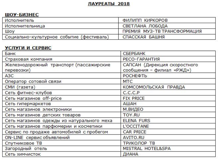 В 2018 году в рамках Ежегодной премии МАРКА № 1 В РОССИИ® была введена новая категория для голосования «ЛУЧШИЕ в шоу-бизнесе по версии РУНЕТА».