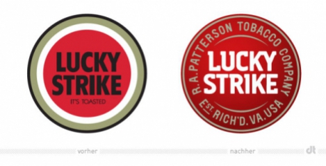 Сразу несколько источников написали о том, что один из старейших брендов сигарет Lucky Strike сменил логотип. Предположительно, автором нового логотипа является агентство G2. Логотип сохранил форму круга, но лишился полосок. Изменилось само написание названия бренда, а также цвет.