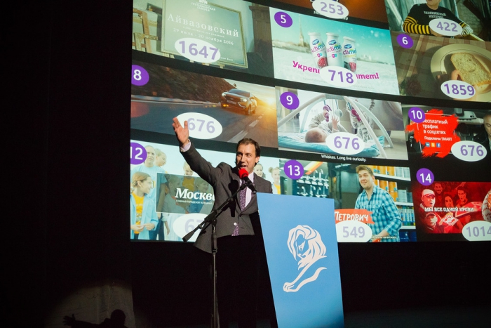 Презентацию Фестиваля в России, на сцене Центрального Дома кино открыл Иван Владимирович Шубин, Руководителю Департамента средств массовой информации и рекламы города Москвы и Владимир Александрович Евстафьев, Официальный представитель МФК «Каннские Львы» в России и СНГ.