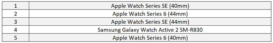 Среди брендов лидером оказалась Apple с моделью-бестселлером Watch Series SE (40mm). При этом расширение ассортимента другими производителями способствовало популяризации категории. Помимо Apple, в пятерку наиболее востребованных производителей вошли Samsung, Jet, Huawei и Amazfit.