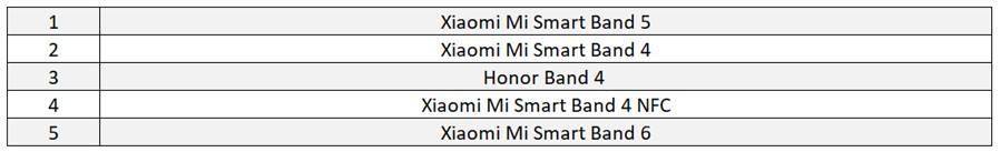 Самой популярной моделью в первом полугодии стал трекер Xiaomi Mi Smart Band 5, а Xiaomi Mi Smart Band 6, поступивший в продажу в мае, замкнул топ-5 продаж. В топ-пять брендов-лидеров по продажам, кроме Xiaomi, также вошли Honor, Huawei, Jet и Samsung.