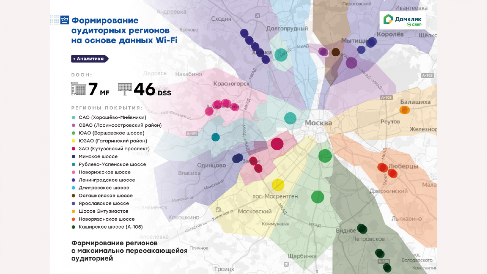 Команда проекта разделила целевую аудиторию, регулярно проезжающую мимо уличных рекламоносителей, на 15 групп в зависимости от территориальной принадлежности. Для этого изучались типичные маршруты и пересечения этих групп.