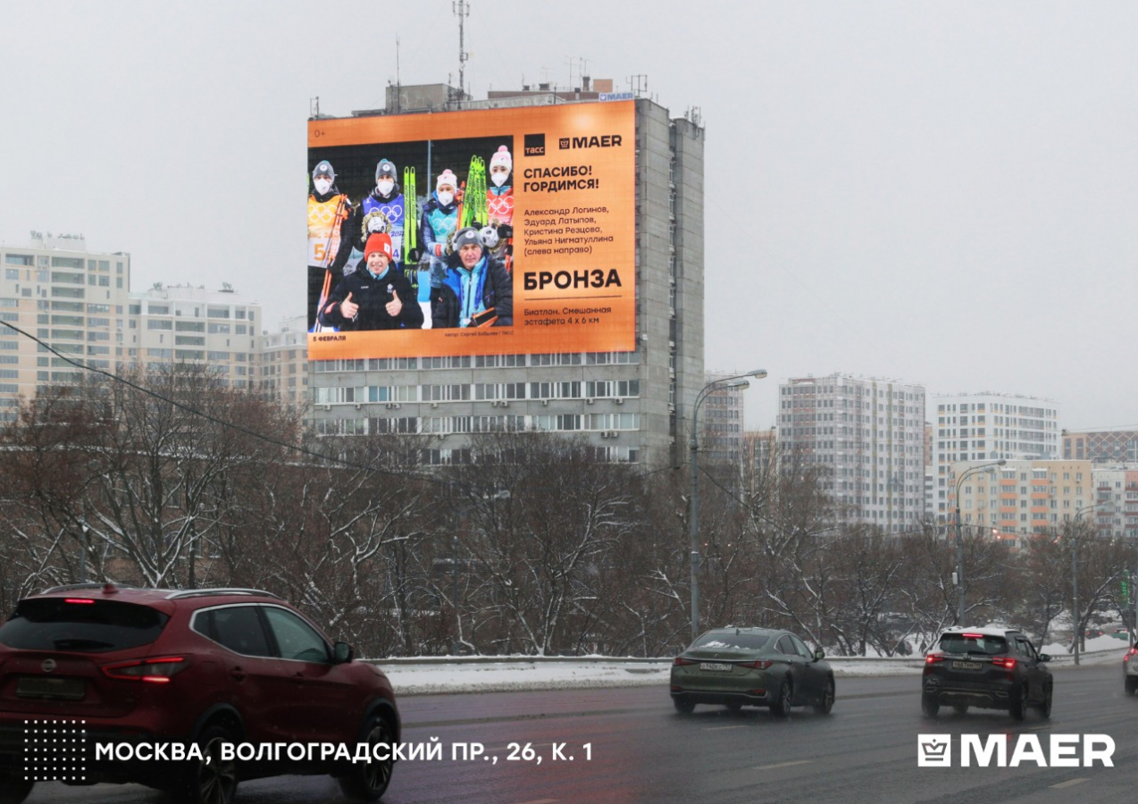 Maer по собственной инициативе проводит масштабную акцию в поддержку российской сборной. Каждый спортсмен, который принёс команде медаль, появляется крупным планом на экранах медиахолдинга. Но история Камилы Валиевой получила отдельное освещение. Подробностями происходящего с Sostav поделились представители компании.